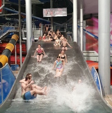 Einmal im Jahr fahren wir gemeinsam in die Therme Erding – allerdings ohne Kajak.